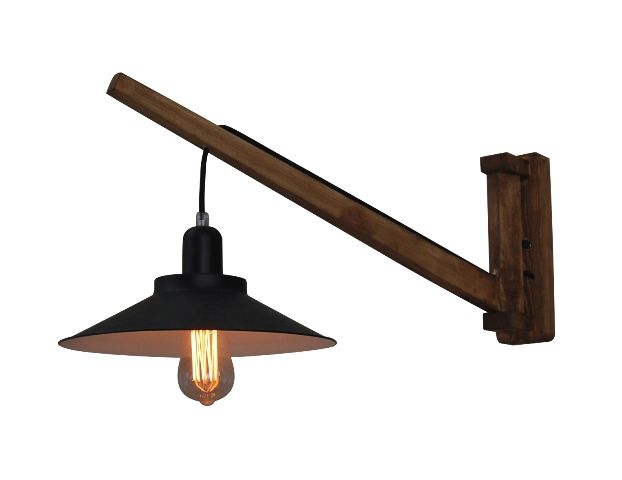 Kaufen Sie diese Wandleuchte E27 Holz Vintage 310mm Durchmesser schwarzer Schirm bei My Planet LED