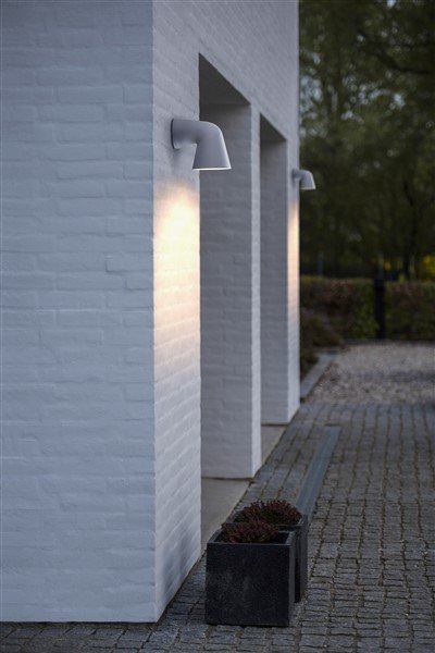 In dieser Außenwandleuchte können Sie einen LED-Spot mit einer GU10-Fassung platzieren. Die verfügbaren Farben sind weiß oder schwarz.