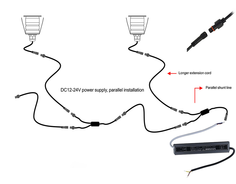 Wenn Sie es mit 220 V verwenden möchten, benötigen Sie einen Transformator (siehe verwandte Produkte). Sie können dafür einen wasserdichten Treiber verwenden. Damit kannst du dann mehrere Spots füttern.