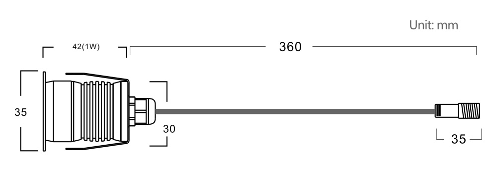Dieser kleine Einbaustrahler aus Edelstahl hat ein Lochmaß von nur 30 bis 33 mm und ist dank seiner Wasserdichtigkeit (IP67) überall einsetzbar. Durch ihre kleine Form lässt sie sich überall problemlos montieren und kann als atmosphärisches Licht fungieren. Außerdem ist sie dimmbar. Es passt in ein Loch mit einer Breite von 30 mm bis 33 mm und einer Tiefe von mindestens 57 mm.