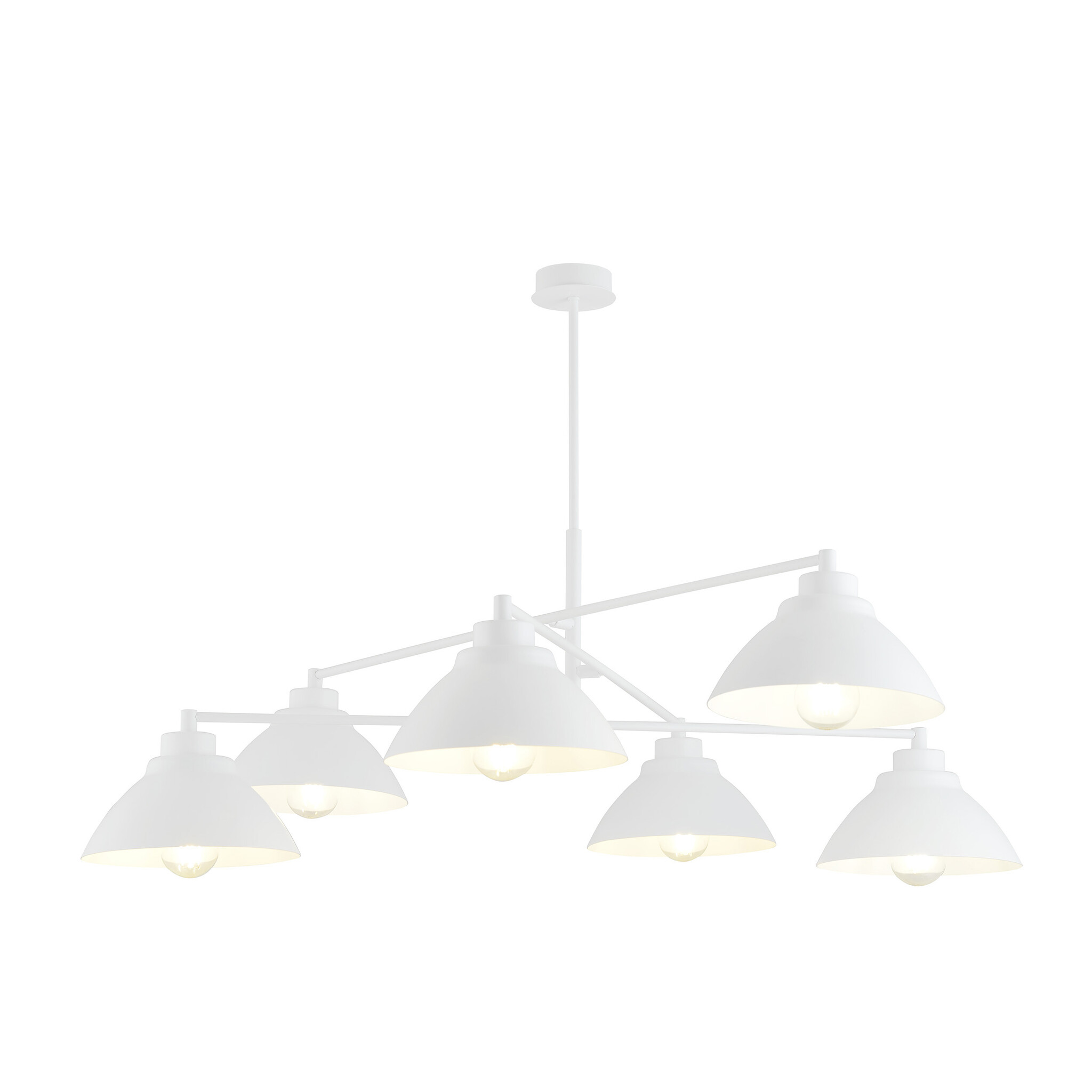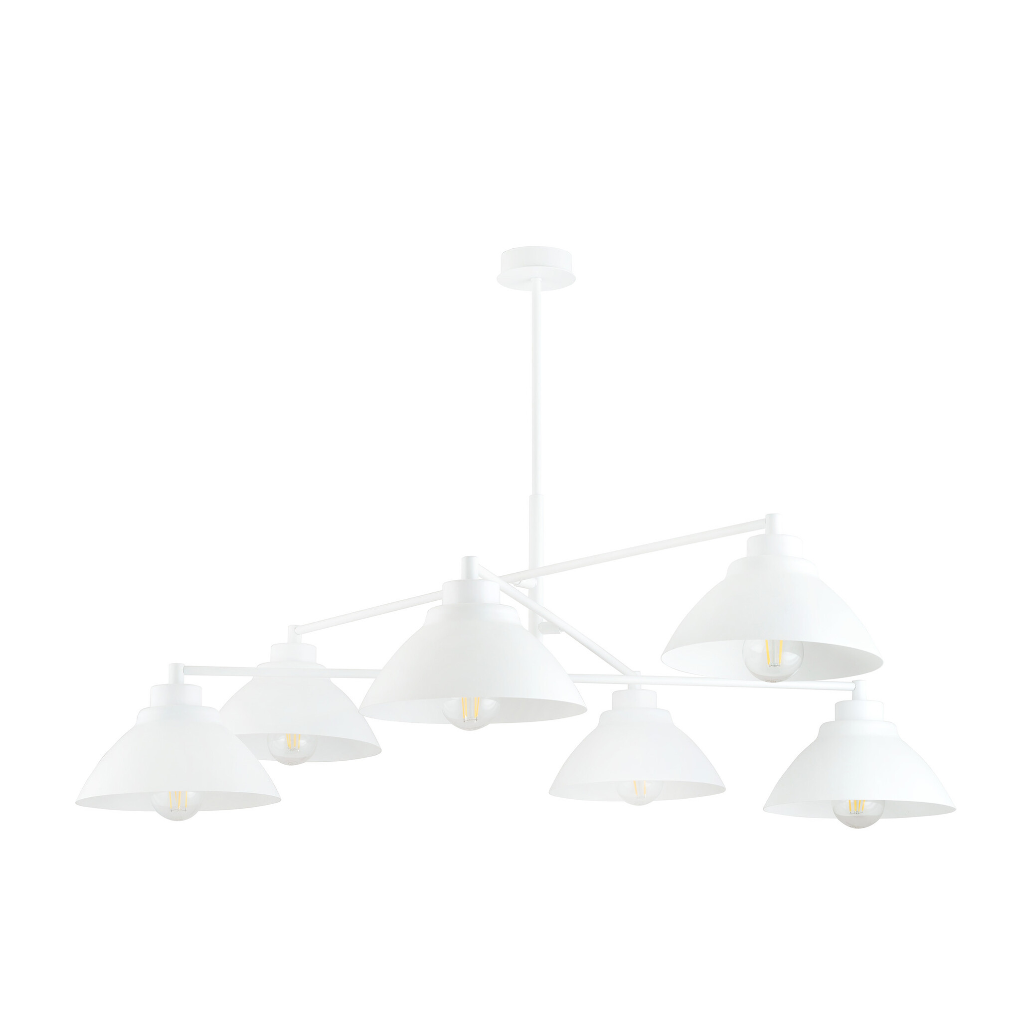 Weiße Design-Hängelampe mit 6 x E27-Kegelschirmen
