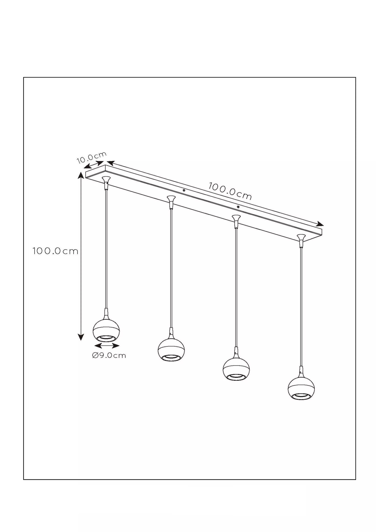 Spezifikationen weiße lange Pendelleuchte mit 4 Glühbirnen von 9 cm GU10: