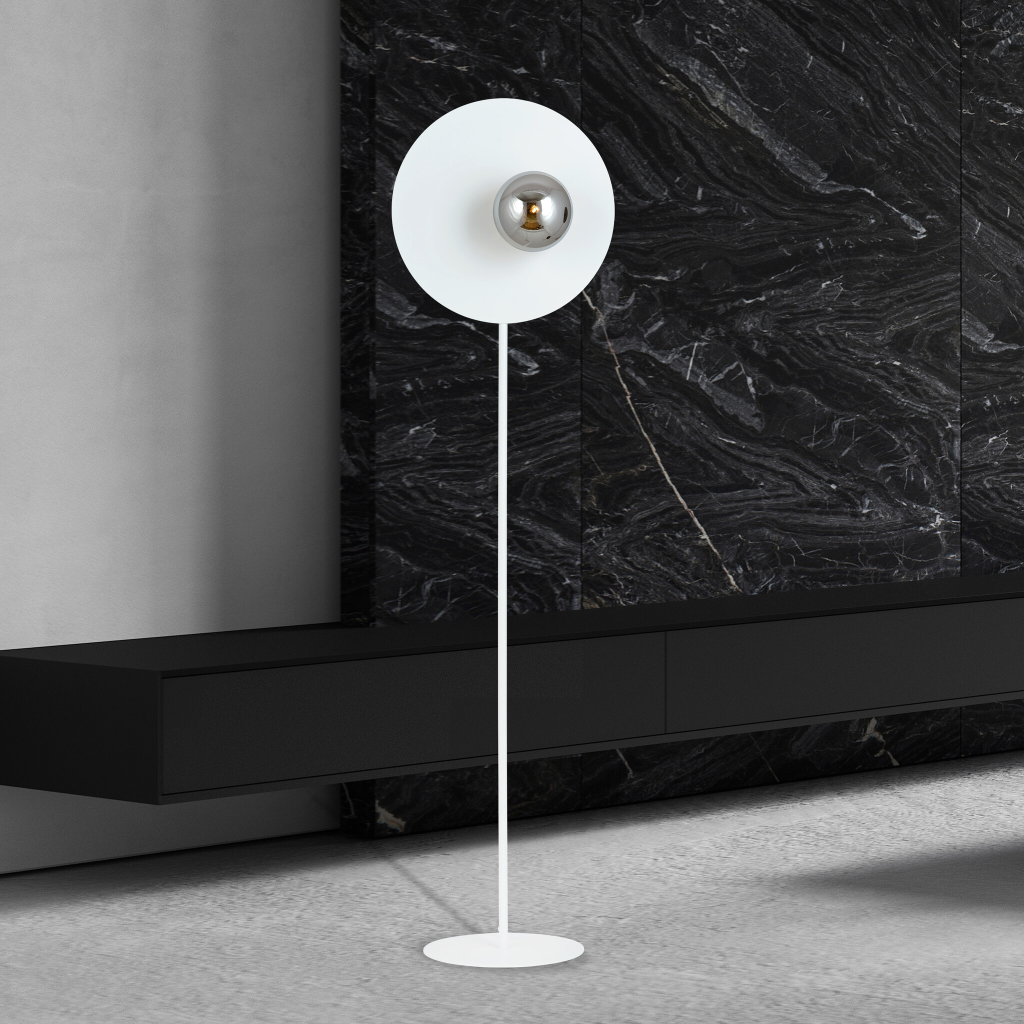Weiße Stehleuchte mit Rauchglaskolben 14 cm E14