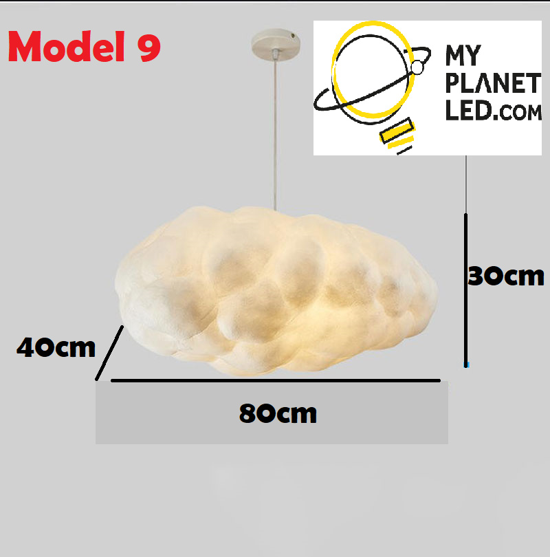 Die Länge dieser Wolkenlampe beträgt 80 cm, die Breite 40 cm und die Höhe 30 cm.