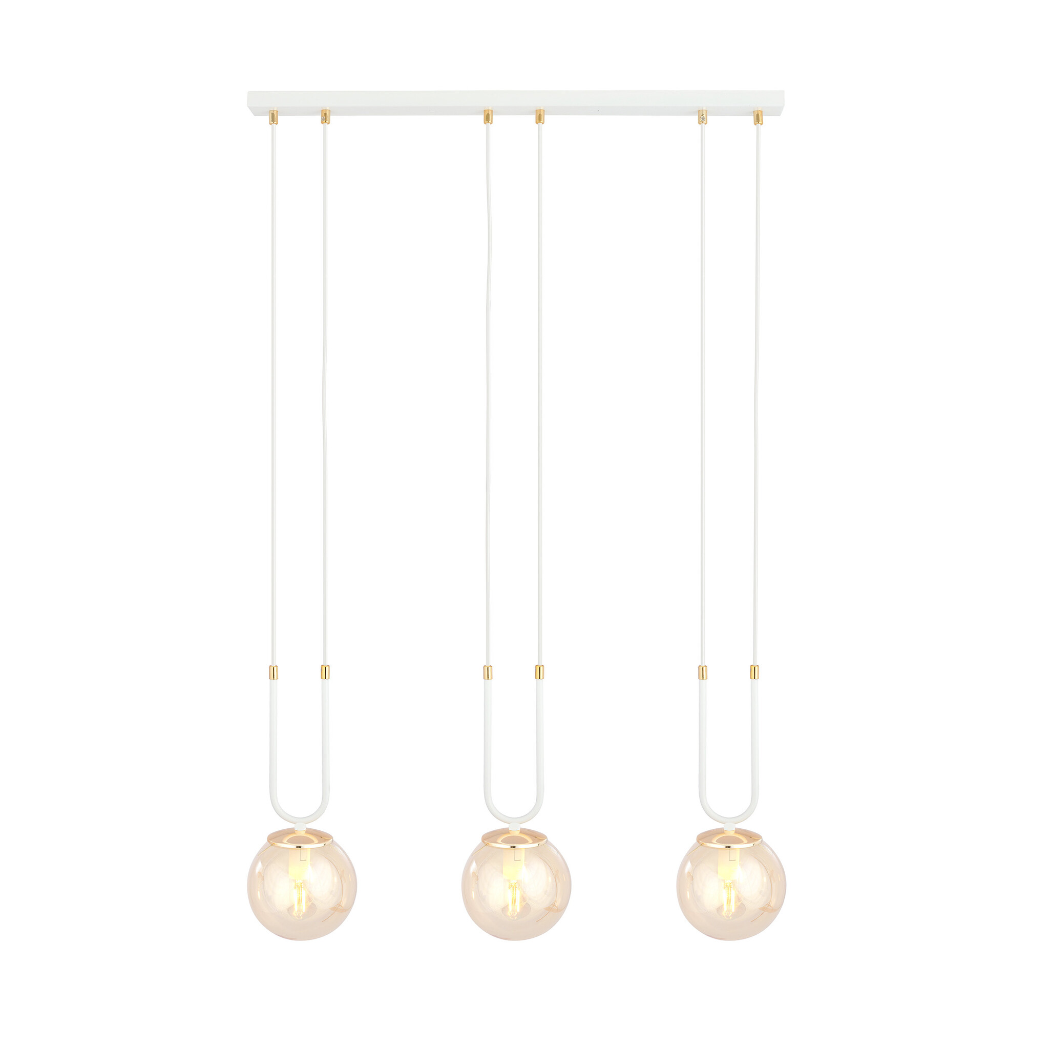 Aarhus white 3 lamp hanging lamp with amber glass E14 70 cm width