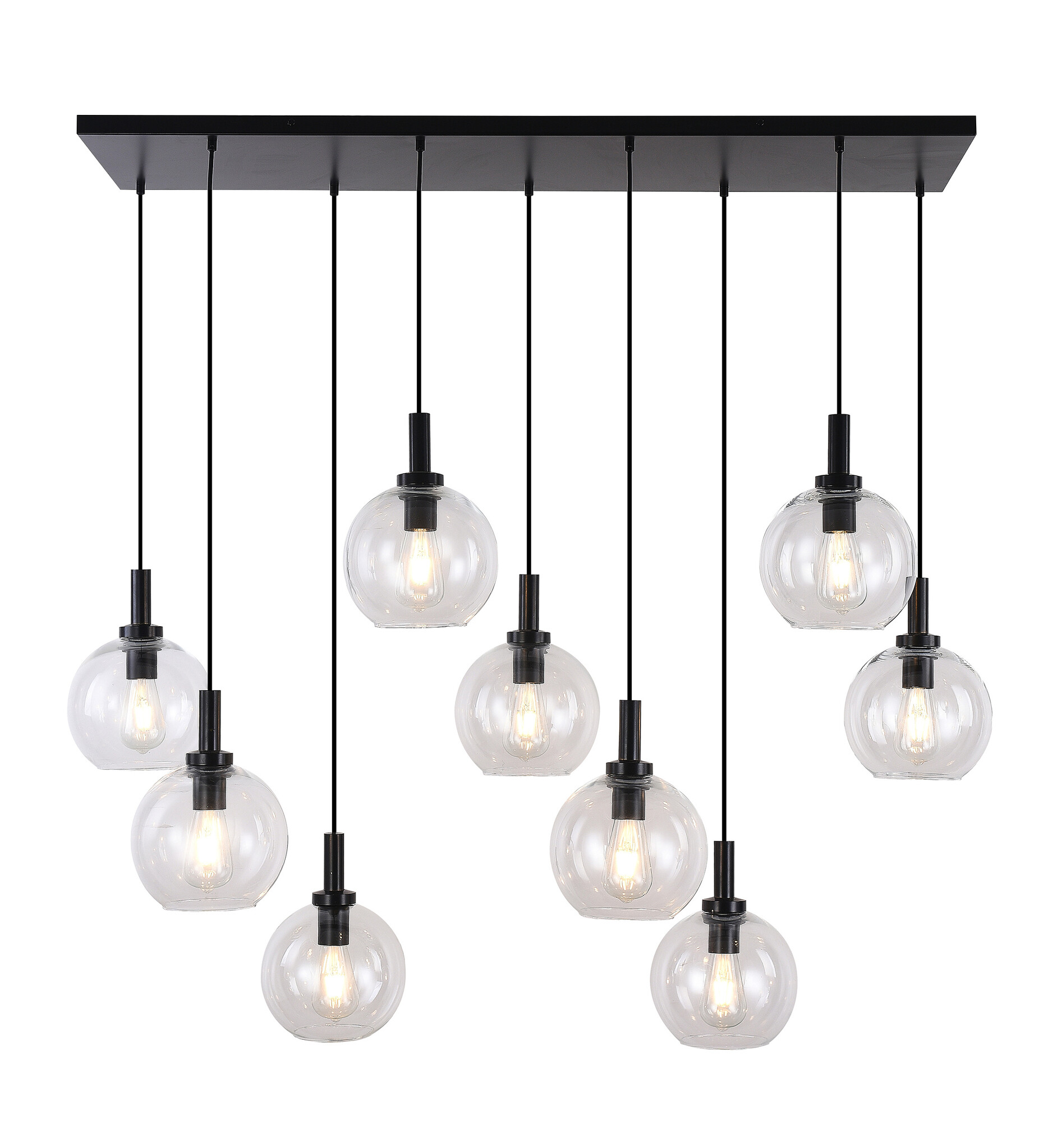 Aris gigantic hanging lamp E27 9L Black, clear glass 9x Ø200mm