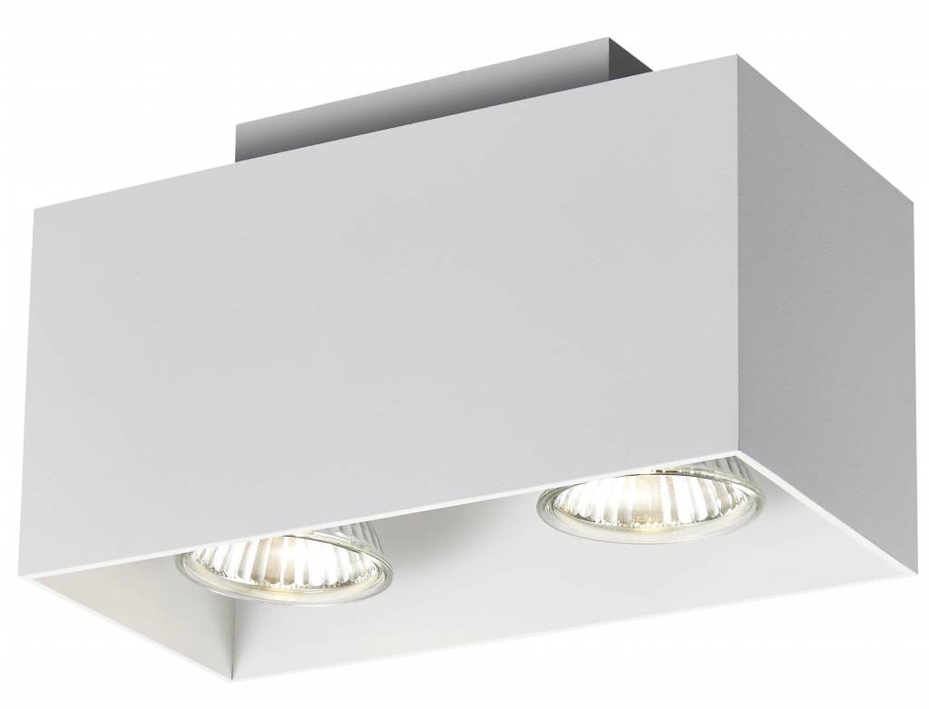 This ceiling lamp white, copper brown, black GU10 2x5W 180x90mm is the larger version of the small ceiling lamp with only 1 spotlight. View our related products. It is available in different colours. You can choose between white, black or dark copper brown.The dimensions of this LED ceiling lamp are: width: 90mm, length: 180mm, height: 110mm.