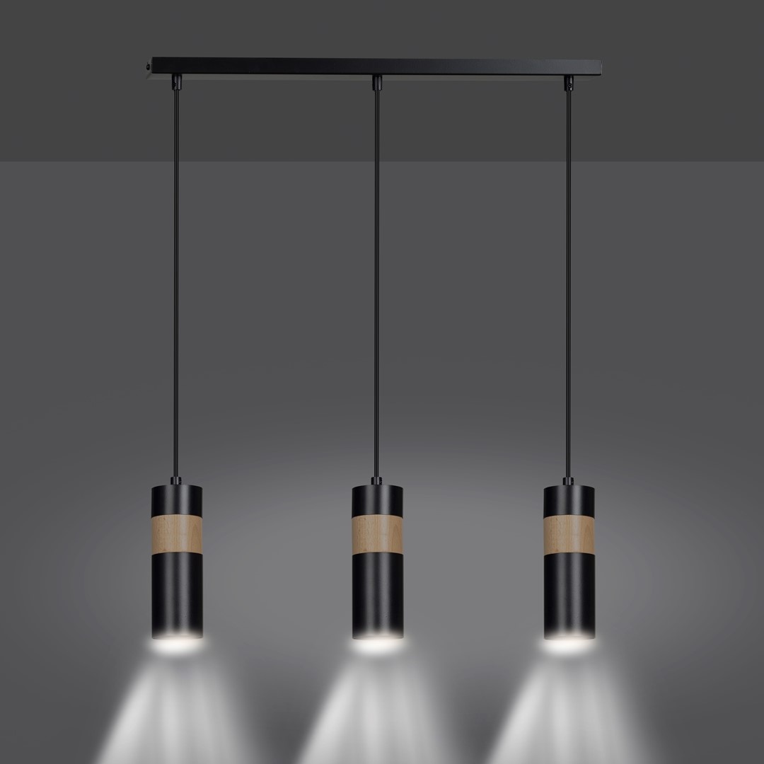 The Emibig AKARI 3 BLACK pendant lamp is a beautiful addition to your interior. With a combination of powder-coated steel and wood, this lamp offers not only functionality but also a stylish appearance.