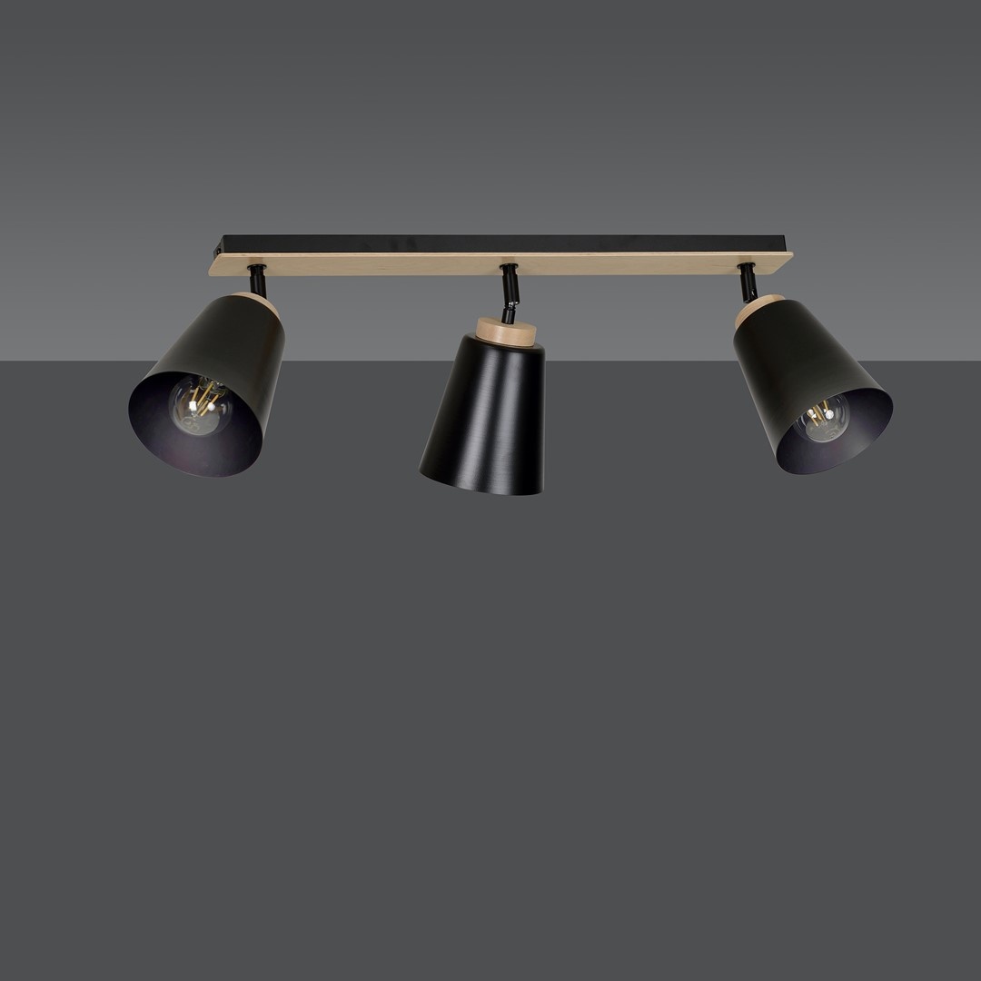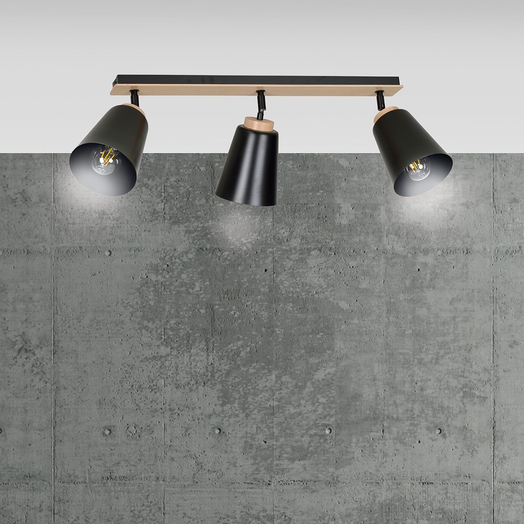The Emibig ATLAS 3 BLACK ceiling lamp is perfect for creating a Scandinavian atmosphere in your home. With a combination of powder-coated steel and plywood, this lamp offers not only style but also durability.