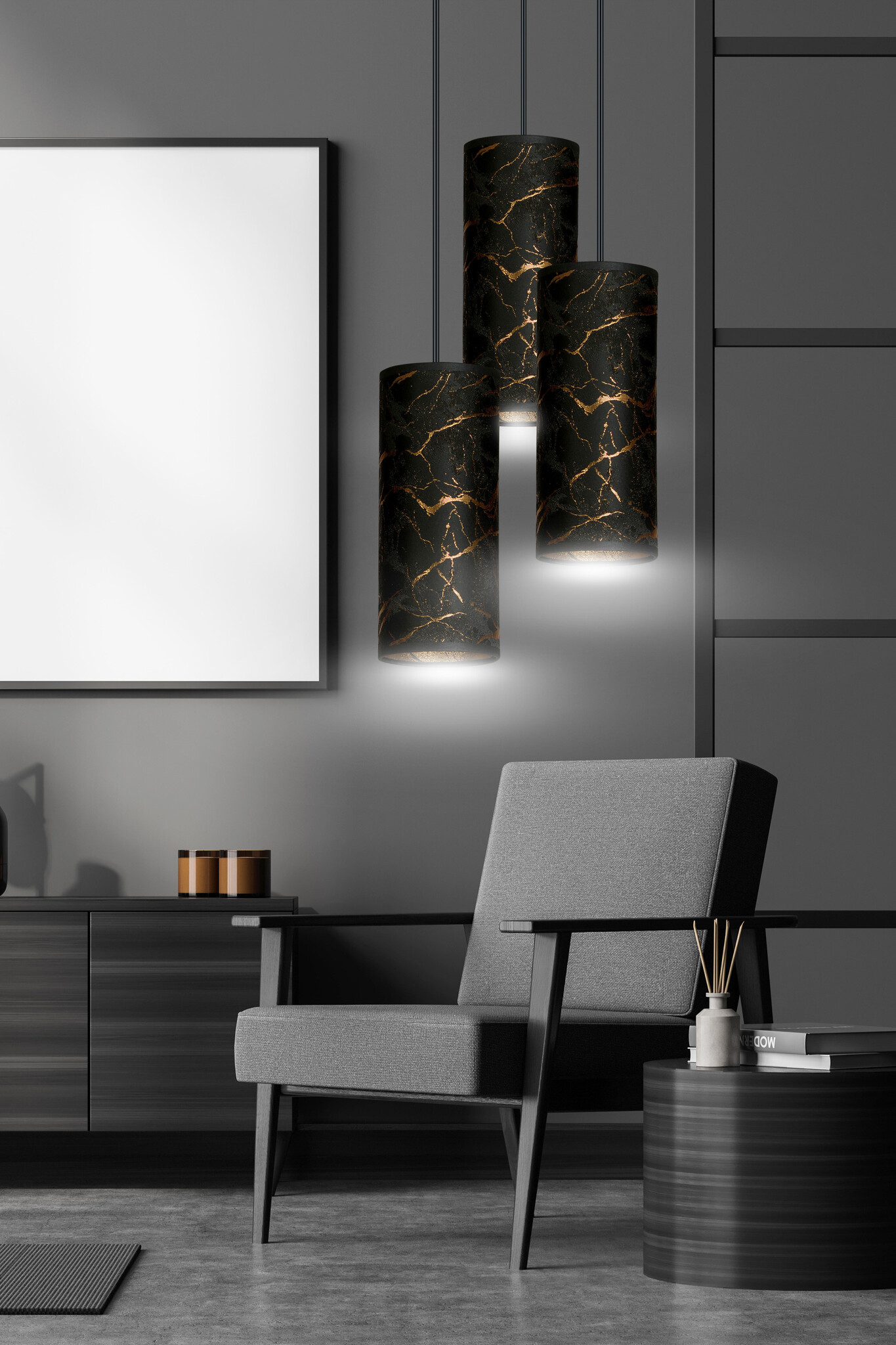 Fakse round pendant lamp with 3 tubes black marble 3x E27