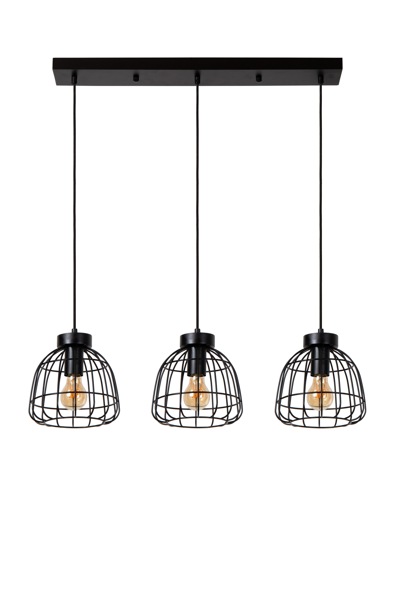 Specifications Felix long black hanging lamp with 3 metal cages E27: