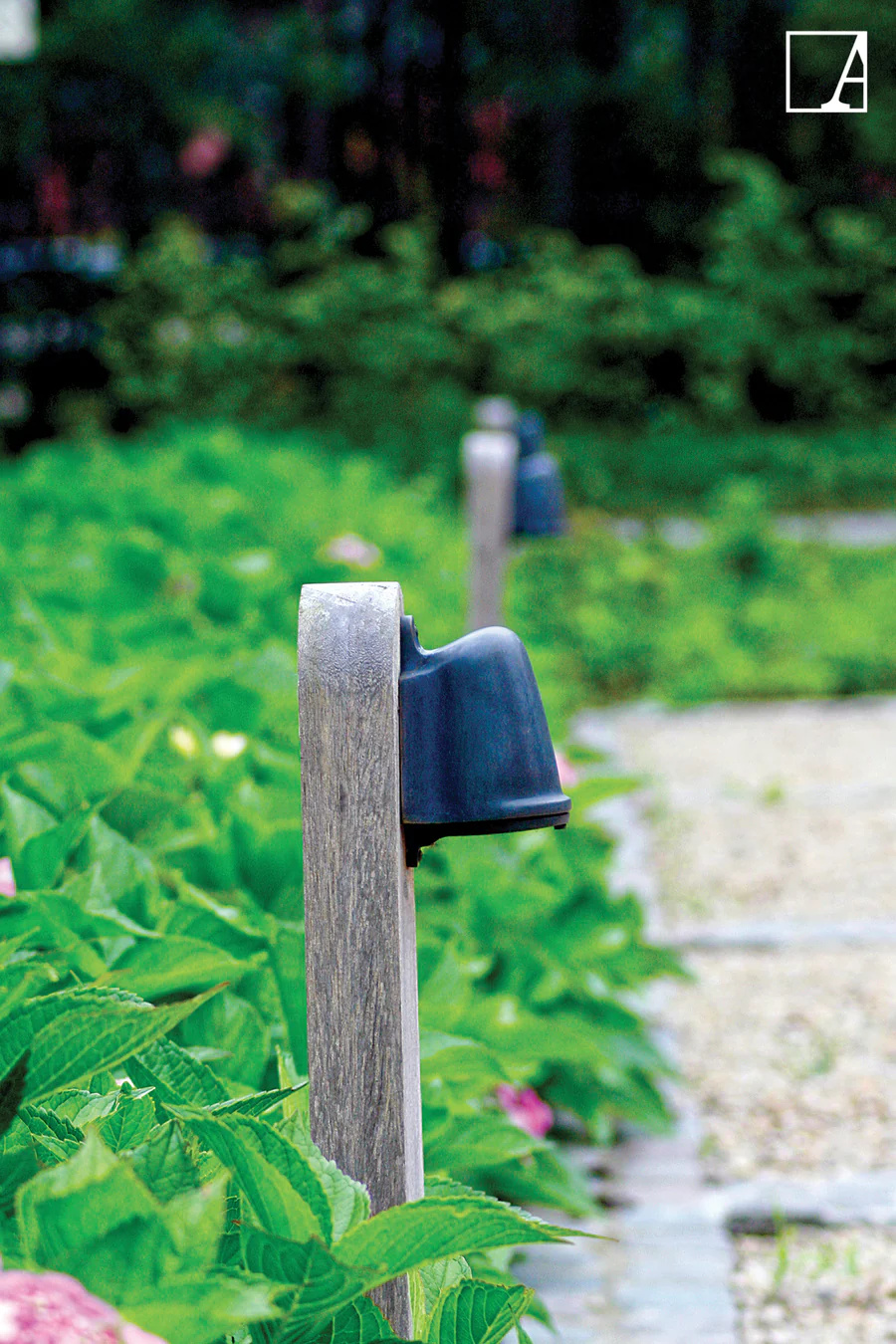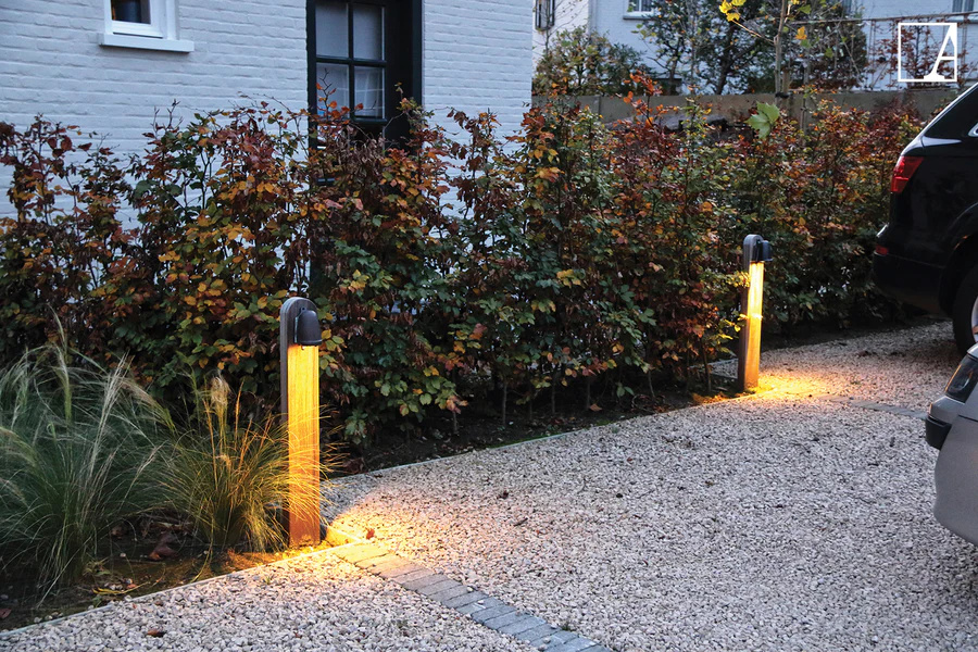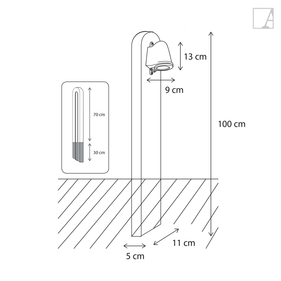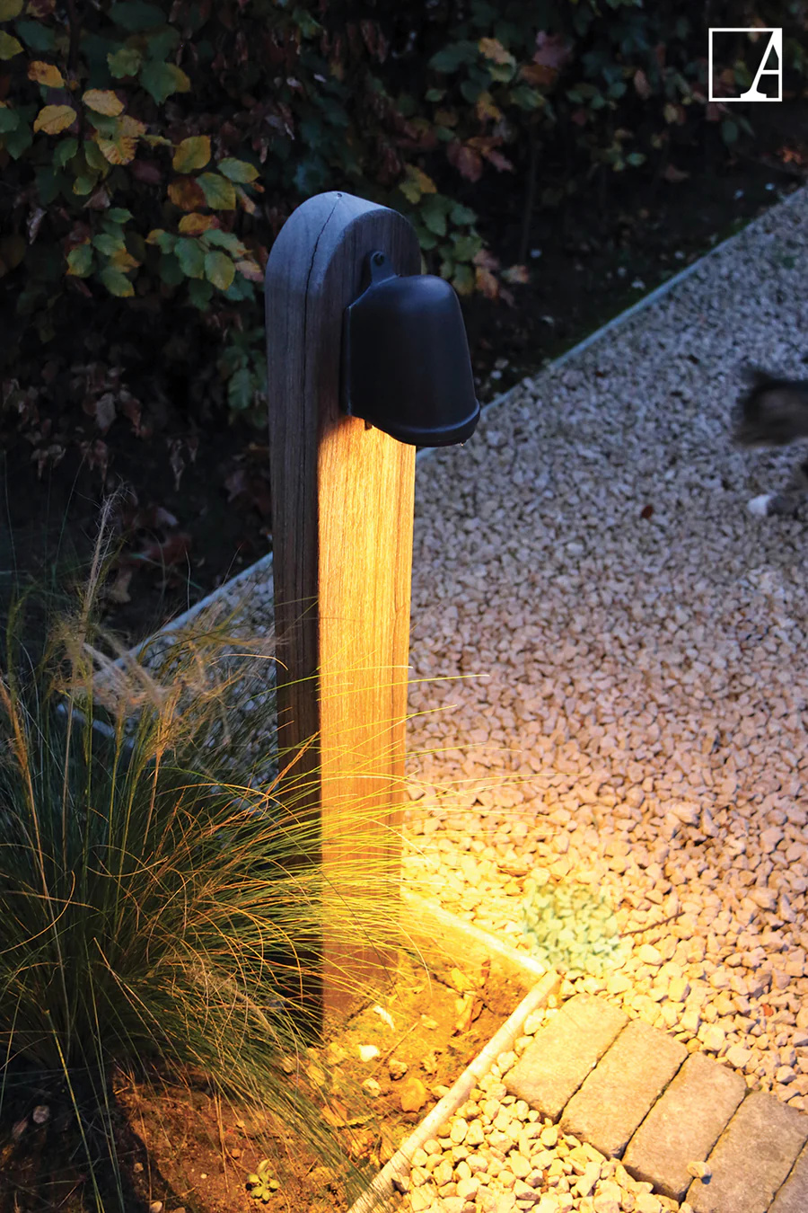 This garden post tropical wood rural bronze, chrome, nickel or brushed brass GU10 is the ARM-1500 placed on a post.