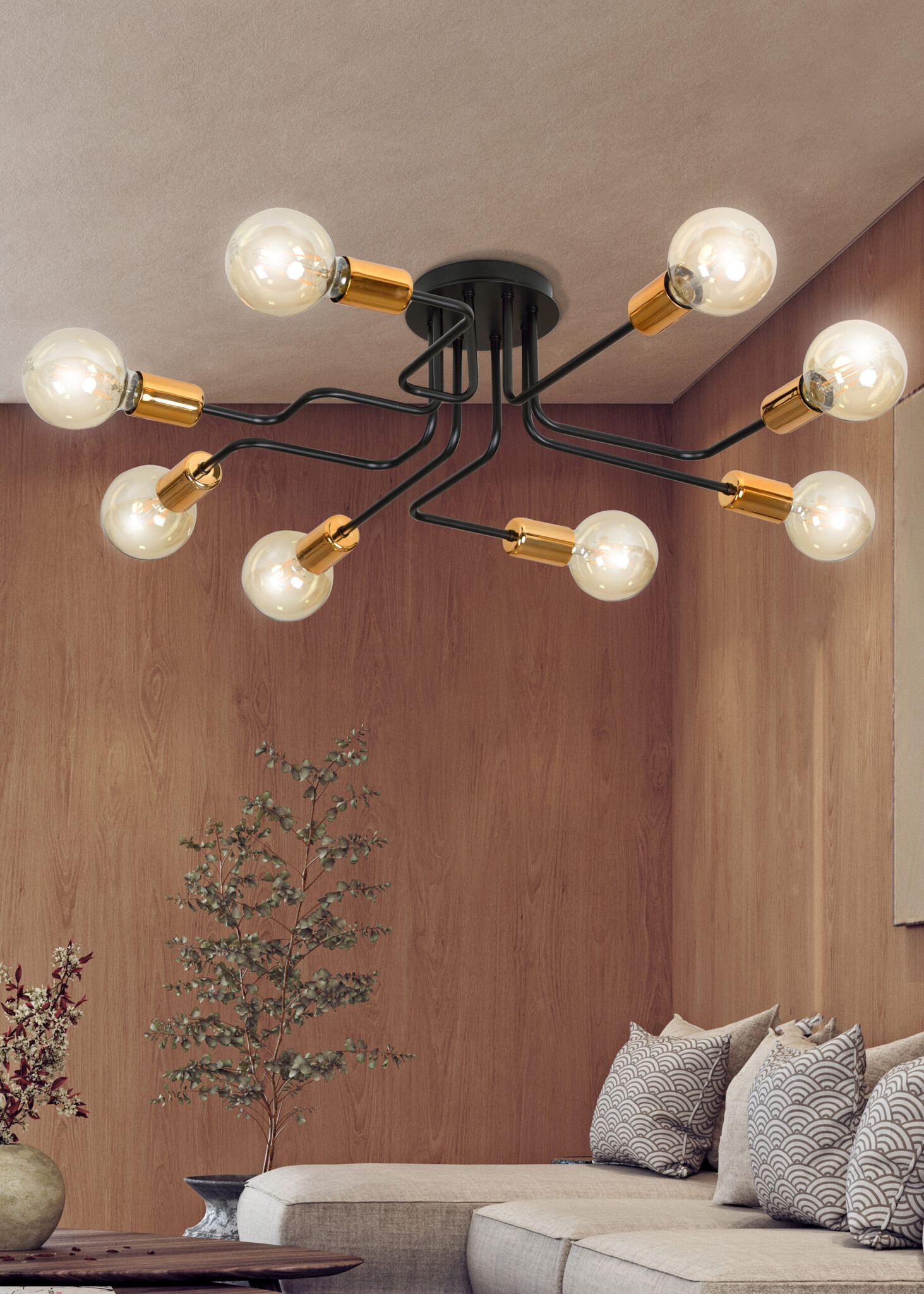 Specifications Hamina 8L copper and black ceiling lamp 8x E27: