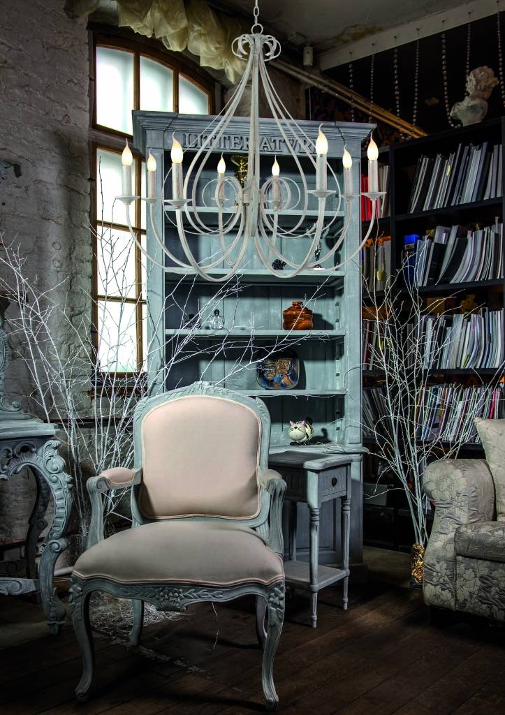 This hanging lamp retro white or black 8xE14 835mm high is equipped for 8 candle lamps with an E14 fitting. It is actually the variant of the antique chandelier for 5 candle lamps (see related products).