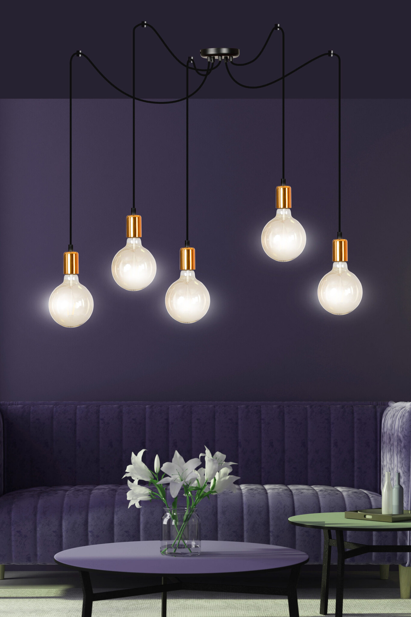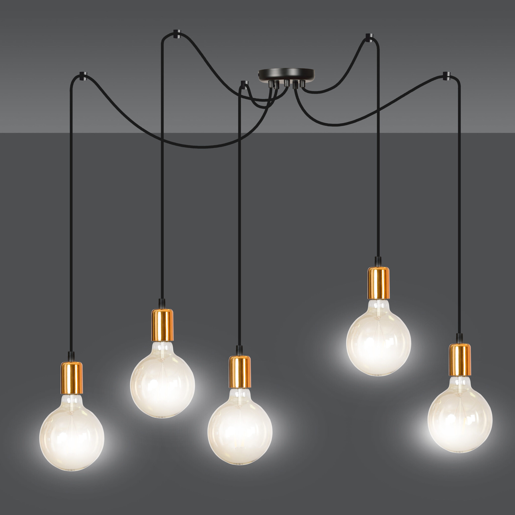 Heinola 5L spider black single hanging lamp with copper 5x E27