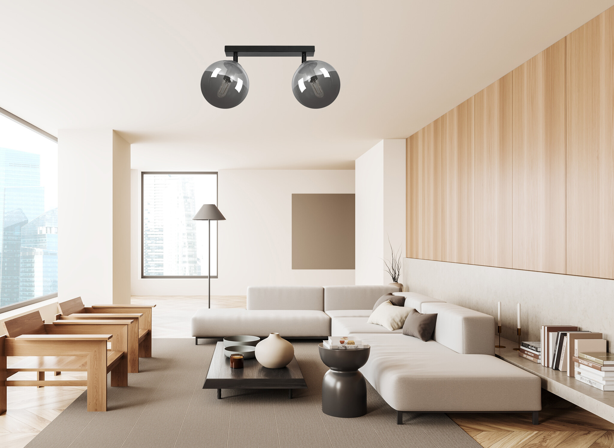 Imatra double 2L black with fumed glass bulbs 2x E14