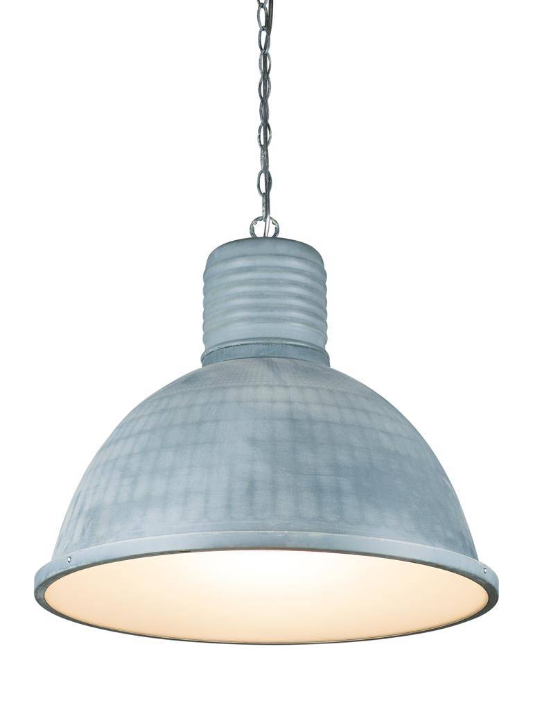 This industrial pendant light is available in white, concrete or black and has a diameter of 53cm and a height of 47cm. The fitting is E27 and you can use a LED lamp for it.