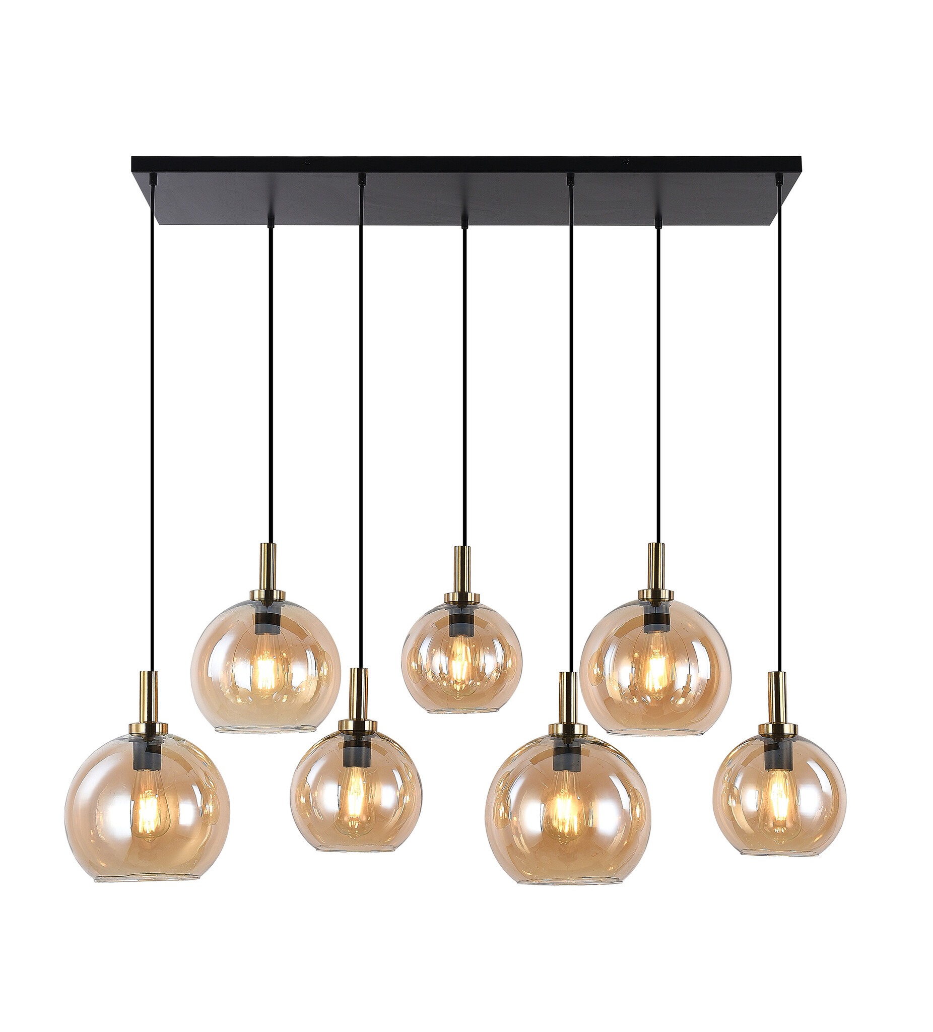 If you are looking for striking lighting, Myplanetled.com is the right place for you. Buy this Iris pendant E27 7L Black + gold, amber glass 3x Ø200mm, 4x Ø250mm and we will deliver it to you quickly and with the greatest care. You can also contact us for multiple items or professional purchases. Contact us via chat, email or telephone and you will be convinced by our expertise and service.