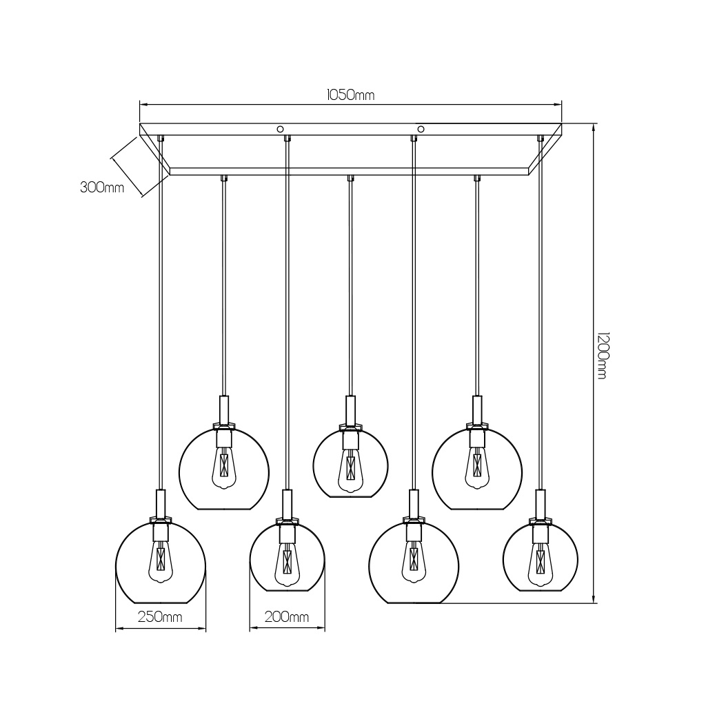 Specifications Iris pendant E27 7L Black + gold, amber glass 3x Ø200mm, 4x Ø250mm: