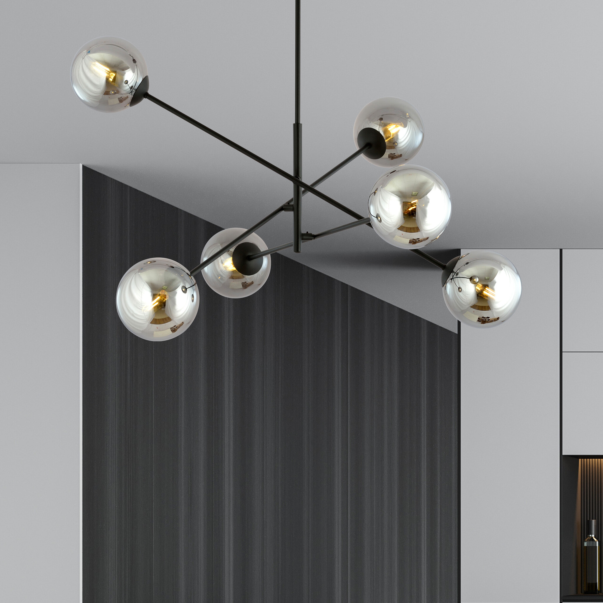 Kalundborg large hanging lamp black with 6 smoked E14 glasses