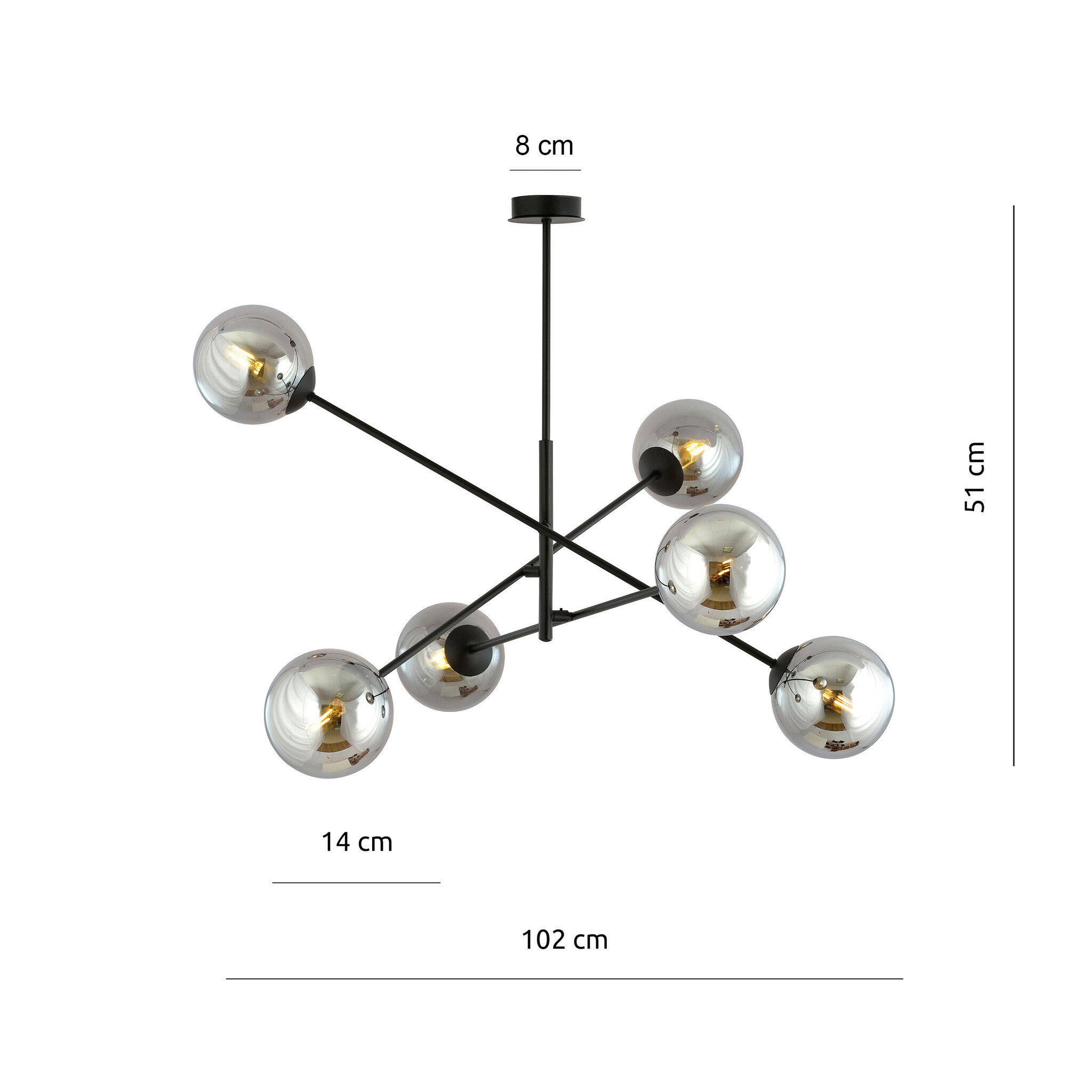 Specifications Kalundborg large hanging lamp black with 6 smoked glasses E14: