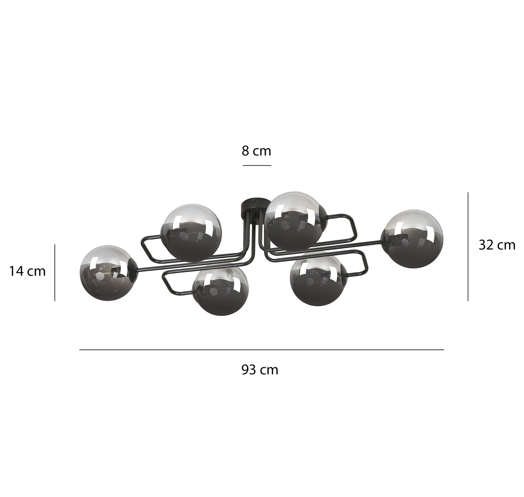 Specifications Kangasala playful 6L ceiling lamp black with smoked glass bulbs E14: