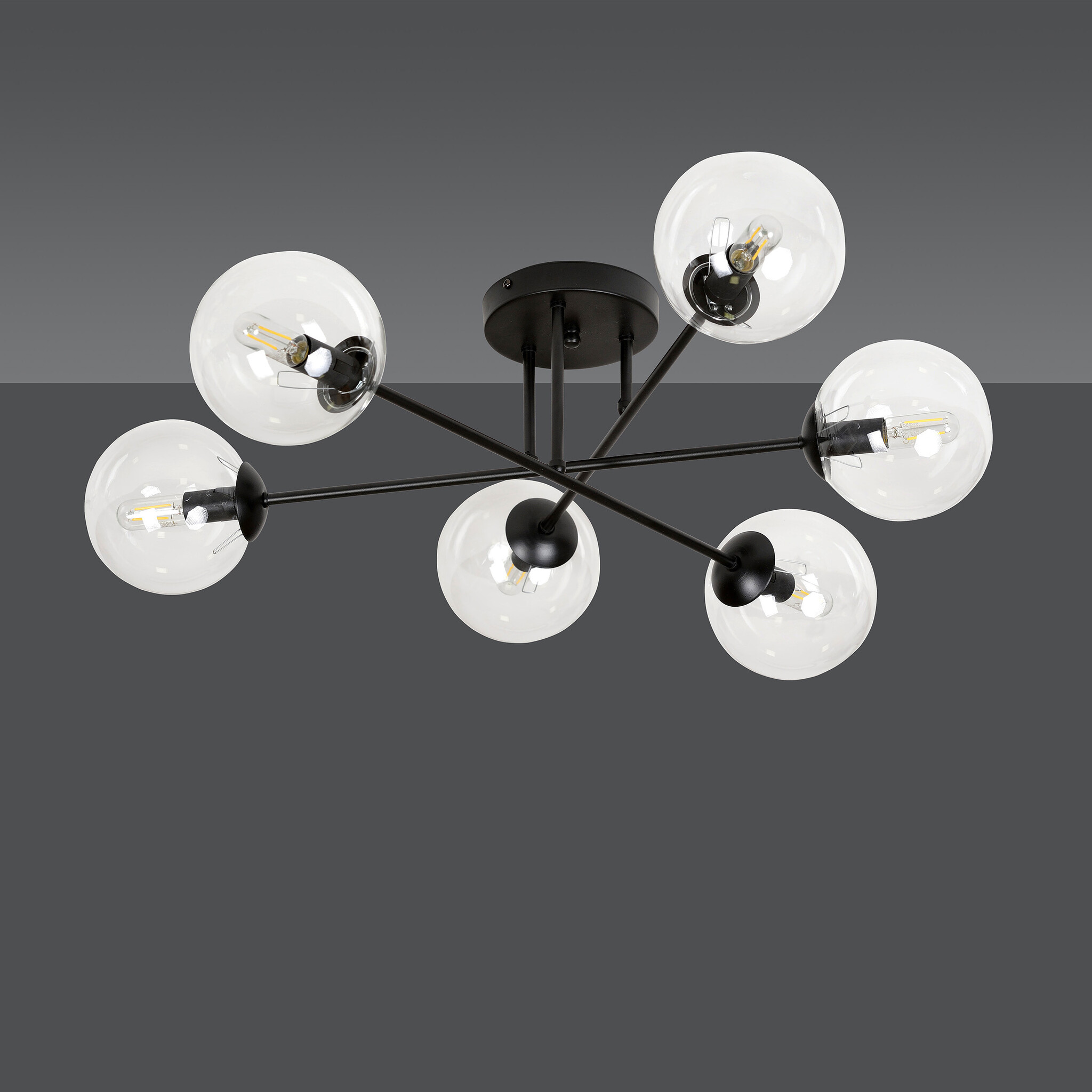 Kangasala round cool 6L ceiling lamp black with transparent glass bulbs E14