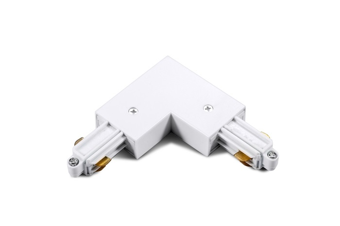 The 220V can be connected to this single-phase or three-phase corner piece from above, so this is an invisible connection. This corner for rail or corner connector is easy to use.