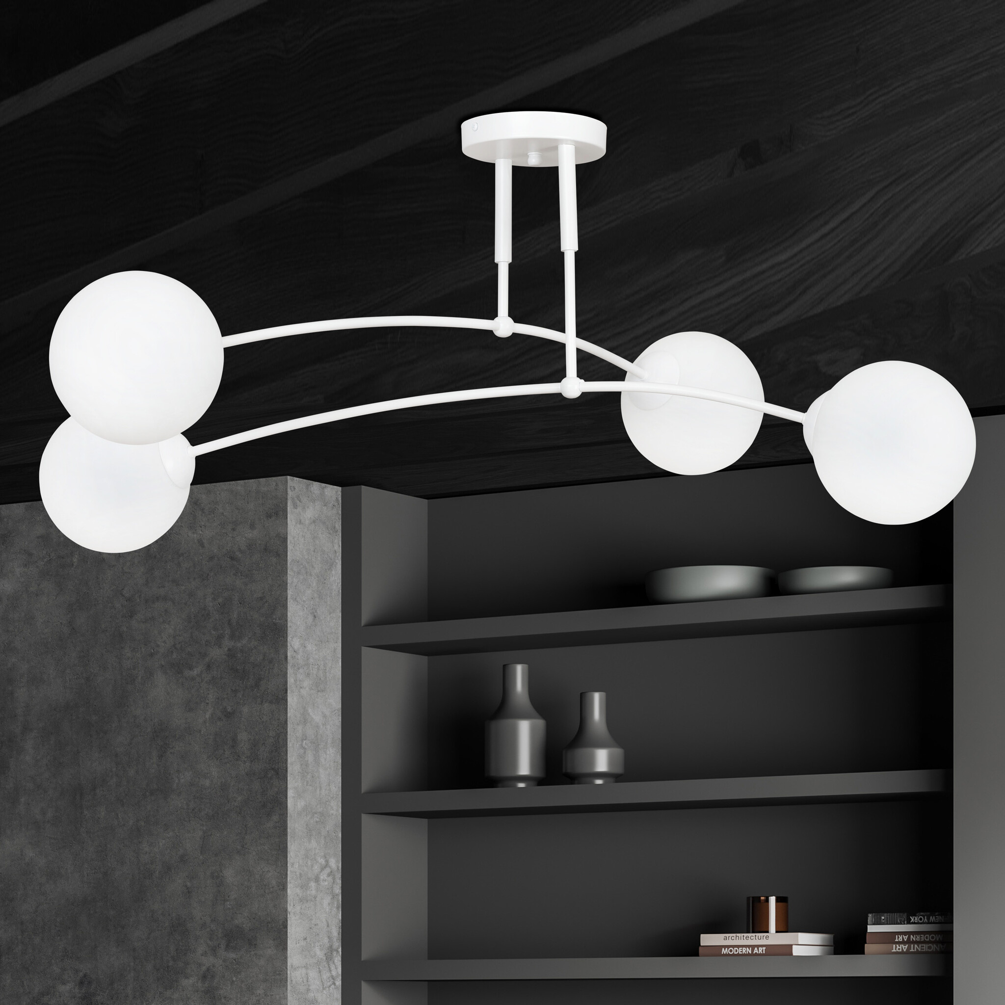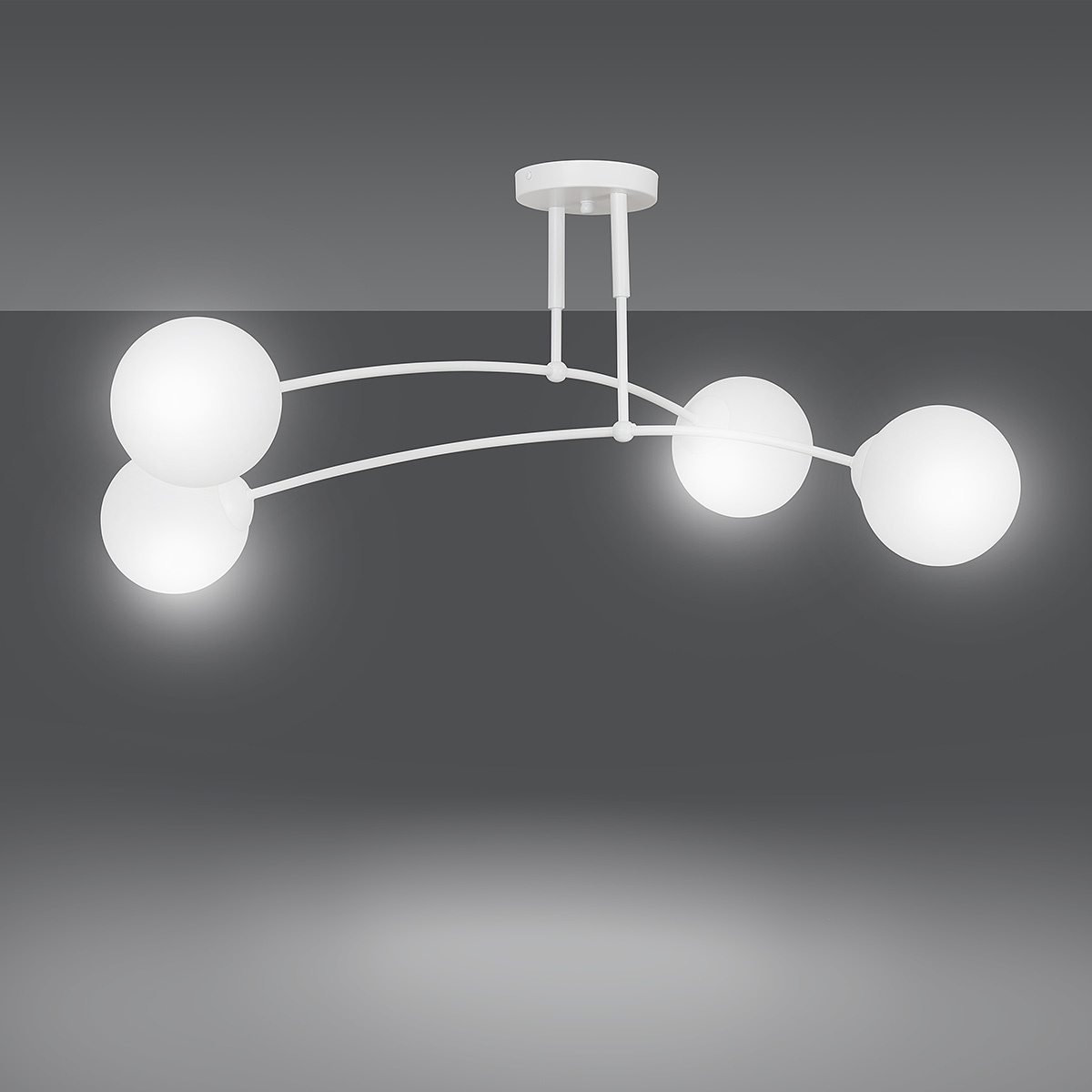 Lahti white double curved ceiling lamp with 4 x E14 white glass bulb
