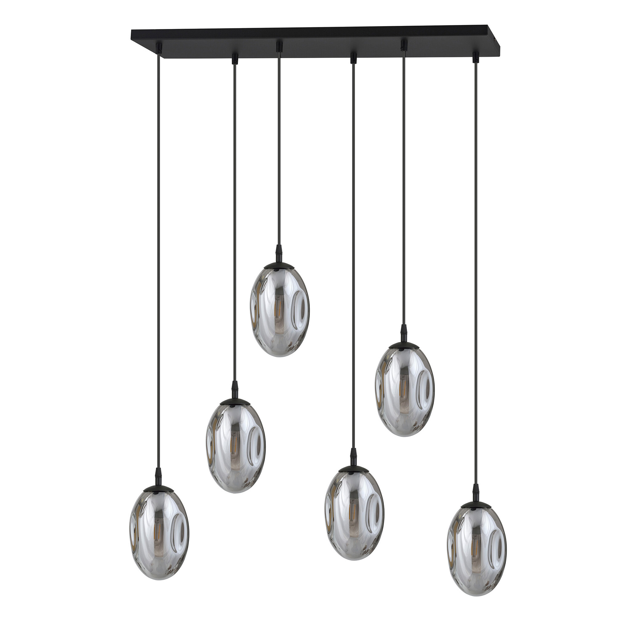 Specifications long 6-lamp black pendant with 6 blown fumed glass: