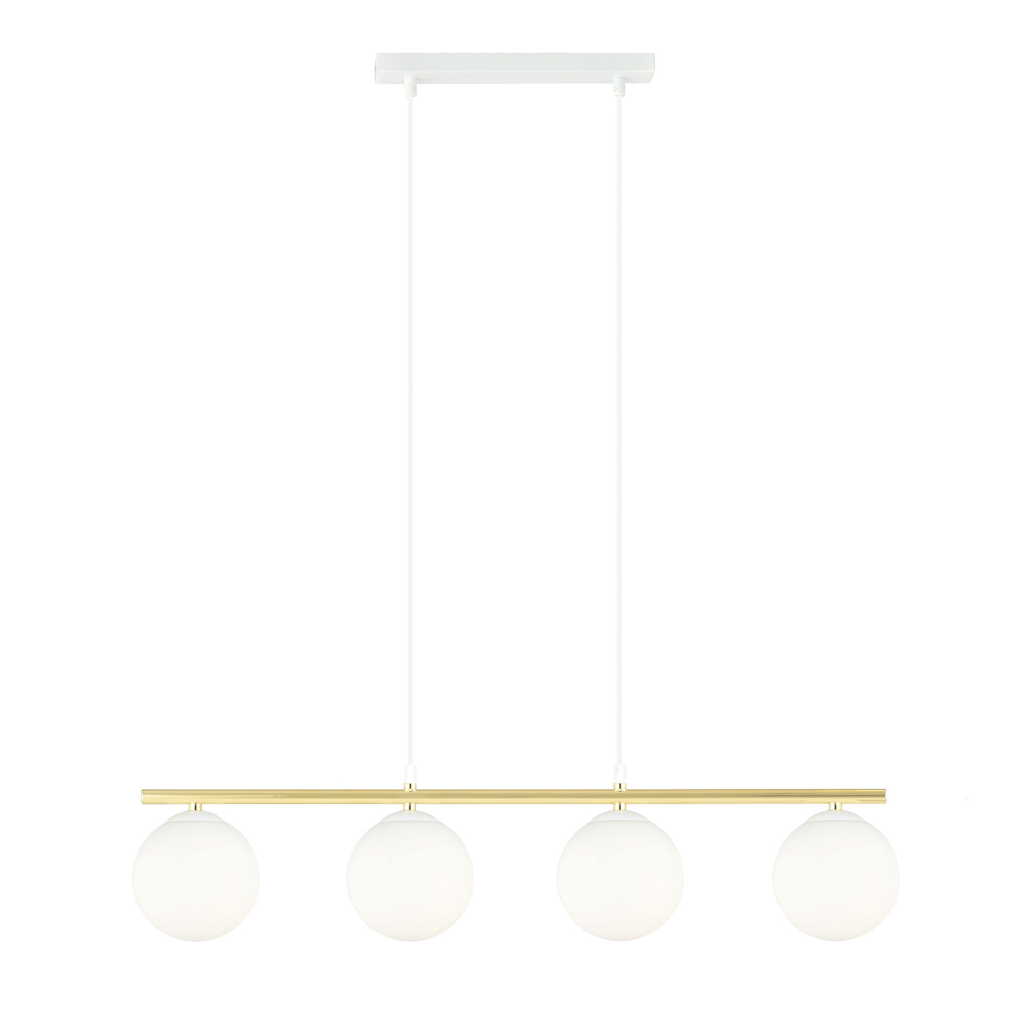 Long white and brass hanging lamp 4x E14 frosted glass bulbs