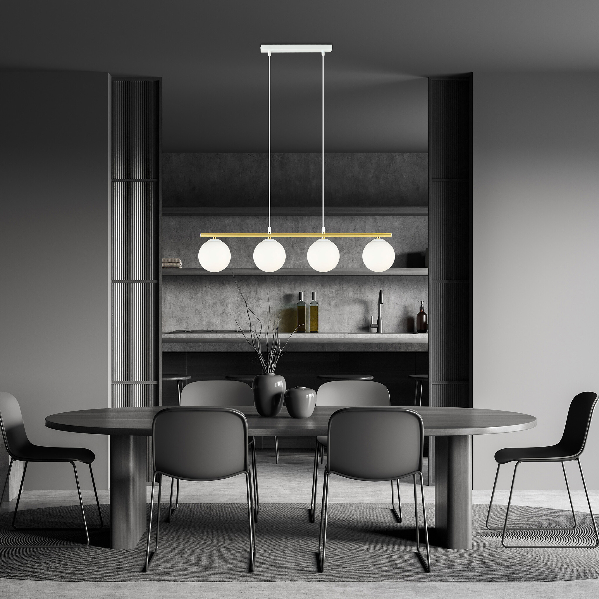 If you are looking for designer lighting at an affordable price, then you have come to the right place at Myplanetled.com. Buy this long white and brass hanging lamp 4x E14 frosted glass bulbs and we will deliver it to you quickly and with the greatest care. You can also contact us for multiple pieces or professional purchase. Contact us via chat, email or telephone and you will be convinced by our expertise and service.