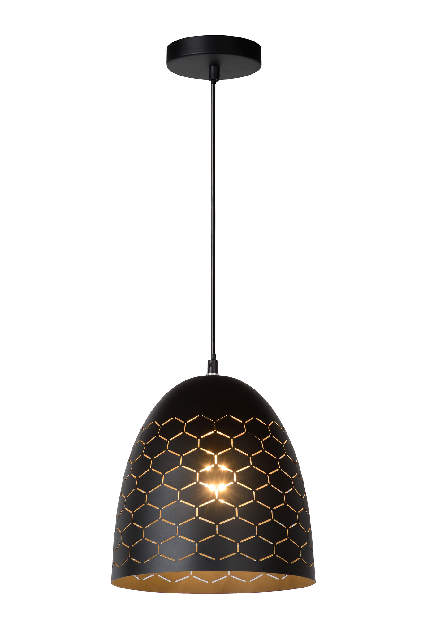 The Lucide GALLA pendant light is a stunning addition to your interior. With its elegant black finish and a diameter of 25 cm, this lamp is perfect for above the dining table or in the living room.