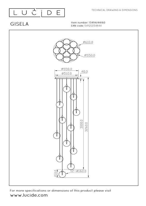 If you are looking for Lucide lighting, then you have come to the right place at Myplanetled.com. Buy this Lucide GISELA - Hanging lamp - Ø 61 cm - LED Dimb. - 12x3.5W 2700K - Transparent and we will deliver it quickly and with the greatest care to you. You can also contact us for multiple pieces or professional purchases. Contact us via chat, mail or telephone and you will be convinced by our expertise and service.