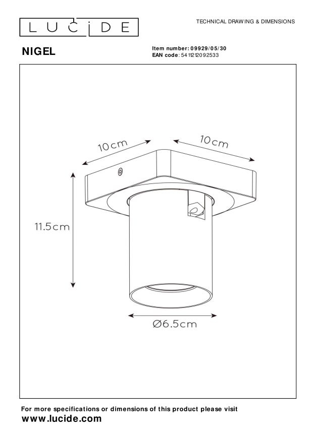 Specifications Lucide NIGEL - Ceiling spotlight - LED Dim to warm - GU10 - 1x5W 2200K/3000K - Black: