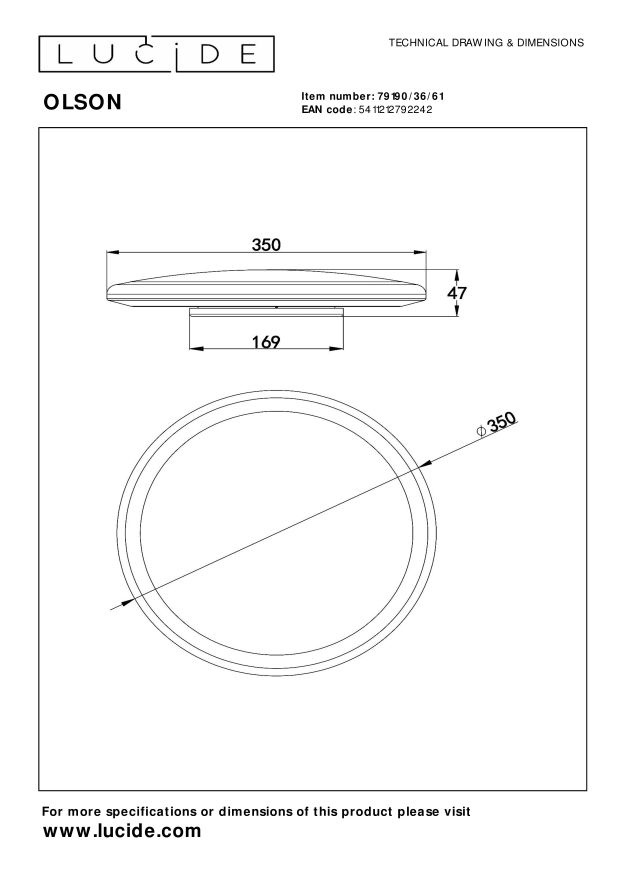 Specifications Lucide OLSON - Ceiling lamp - Ø 35 cm - LED Dim. - CCT - 1x36W 3000K/6500K - Opal: