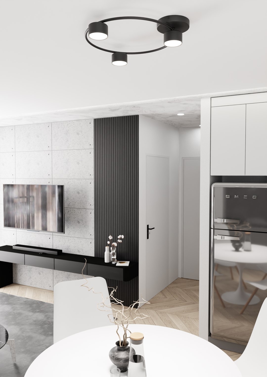 The LUCIO ceiling lamp is a modern lighting solution that perfectly fits contemporary and industrial interiors. With its minimalist design and matte black finish, this lamp adds style and functionality to any space.