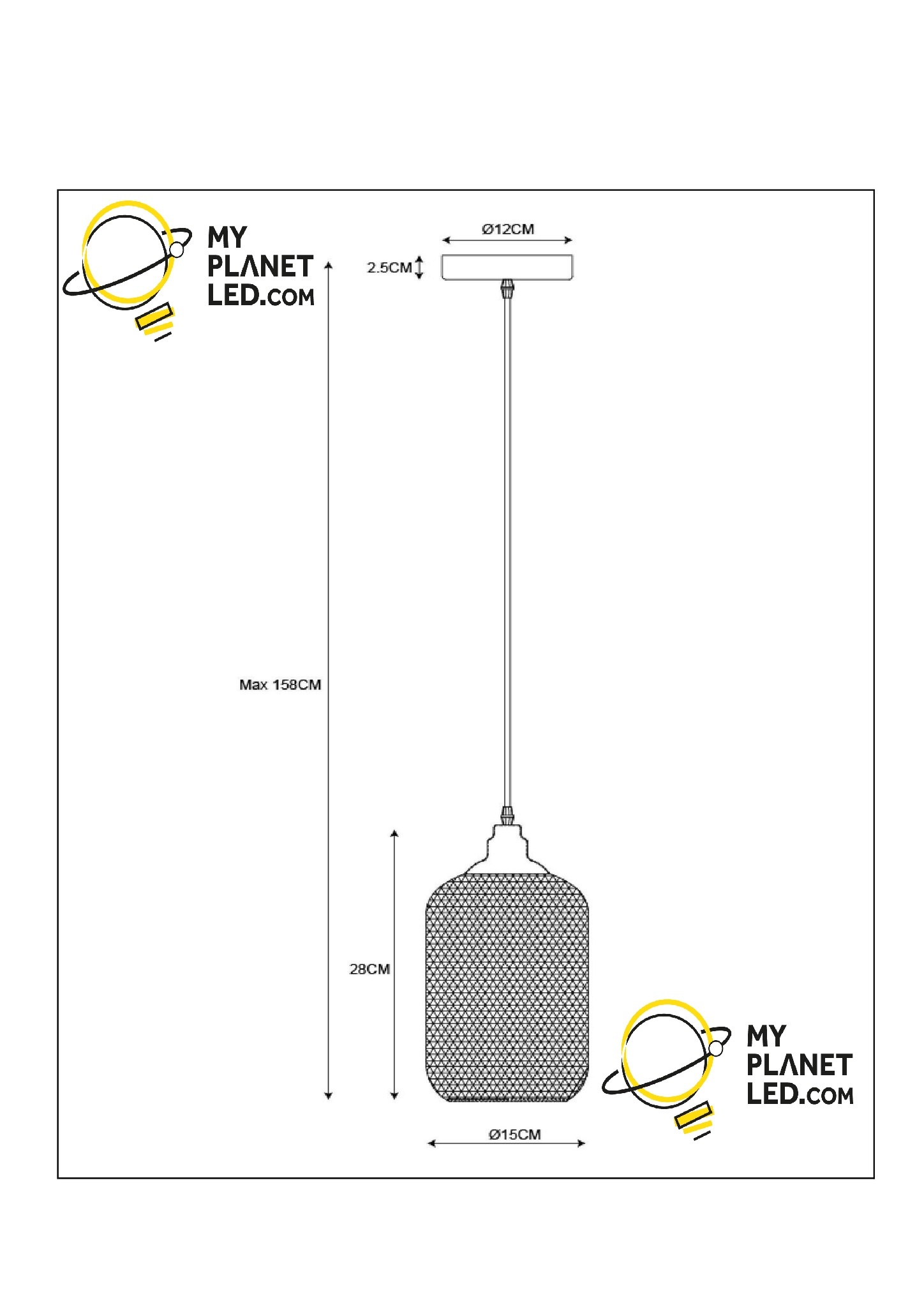Specifications Messi small hanging lamp diameter 15 cm 1xE27 black: