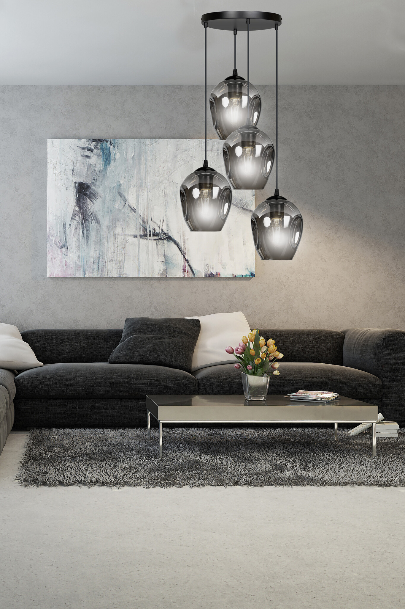 Nokia round 4L smoked glass hanging lamp 4x E27