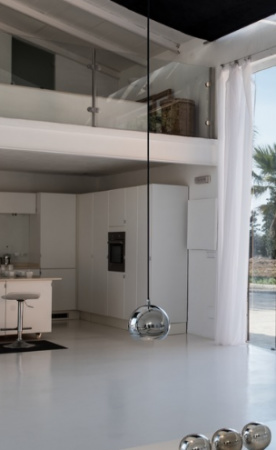 This small hanging lamp gives your interior an extra look. It has the appearance of a ball with a cut-out at the bottom in order to be able to place an LED lamp AR111 on the inside. The fitting is GU10.