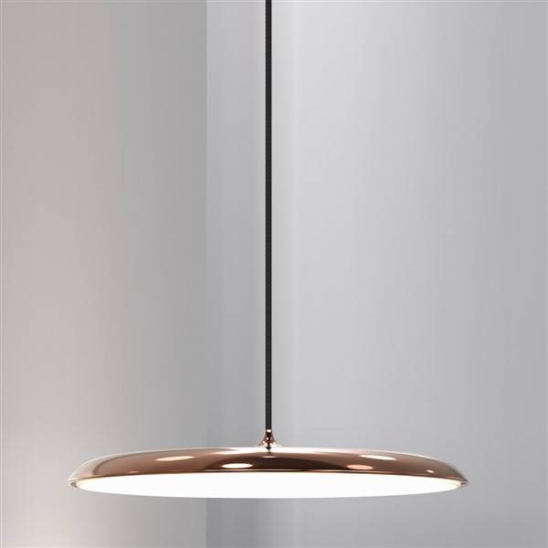 The dimensions of this pendant light round LED grey or copper 24W 400mm Ø are : diameter 400mm, height plate 60mm. An adjustable cable of 3000mm is also included.It can be obtained in copper, black or grey.