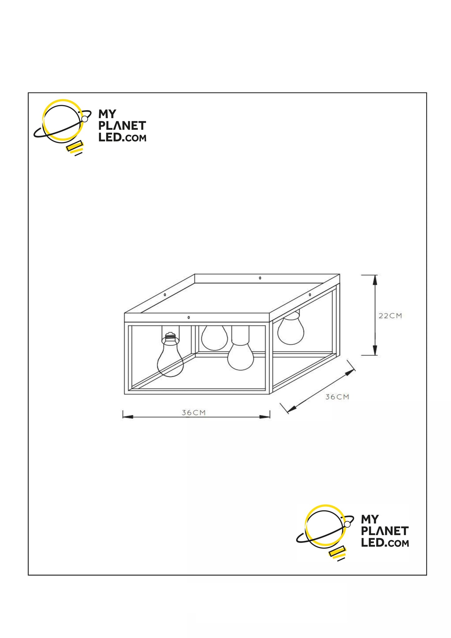 If you are looking for added value for your outbuilding, then you have come to the right place at Myplanetled.com. Buy this Rubens square black and gold ceiling lamp 4x E27 and we will deliver it to you quickly and with the greatest care. You can also contact us for multiple items or professional purchases. Contact us via chat, email or telephone and you will be convinced by our expertise and service.