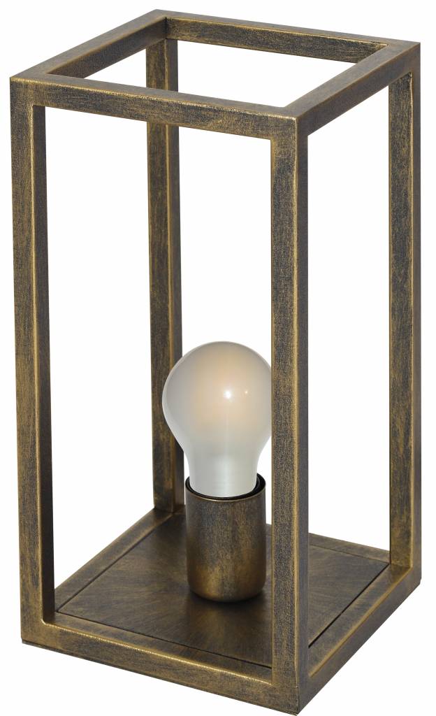 The rectangular shape of this rural table lamp excels in simplicity! It is constructed from a base of a flat metal plate from which 4 rods originate that form a nice square at the top. The central lamp base allows you to work with a beautiful decorative lamp, such as this long 4W LED lamp .