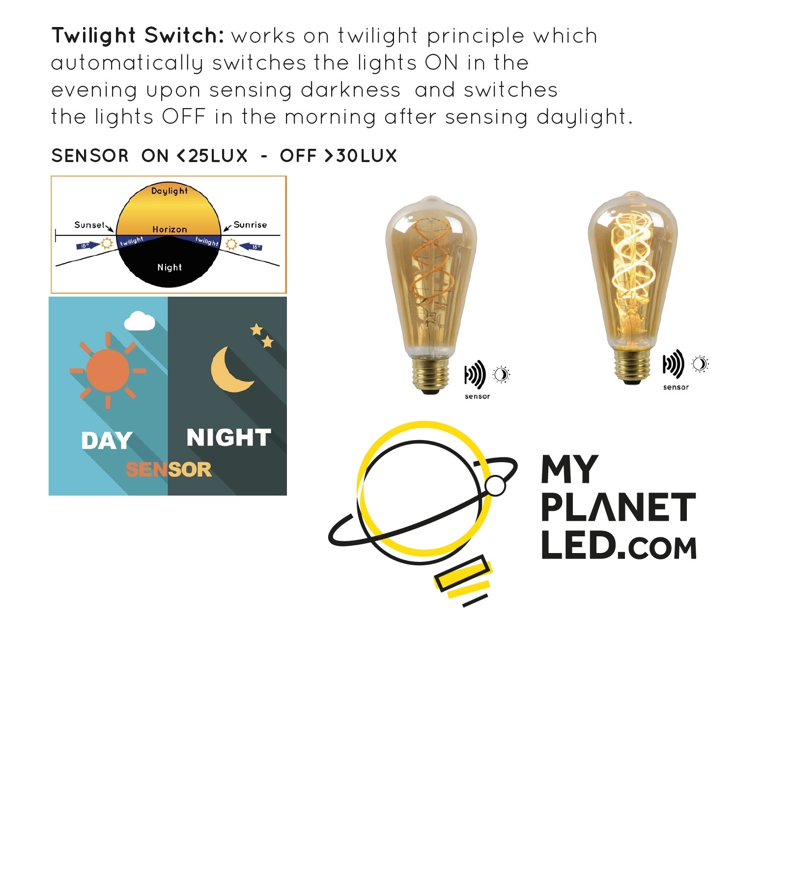 Specifications ST64 TWILIGHT SENSOR filament lamp outdoor lighting diameter 6.4 cm LED E27 1x4W 2200K amber: