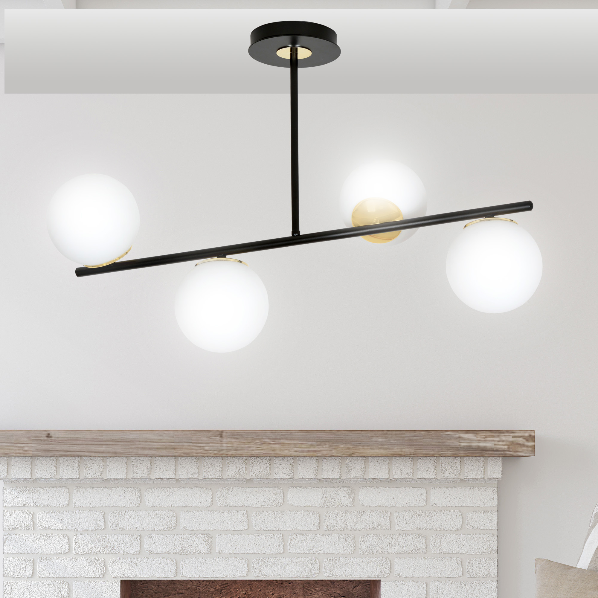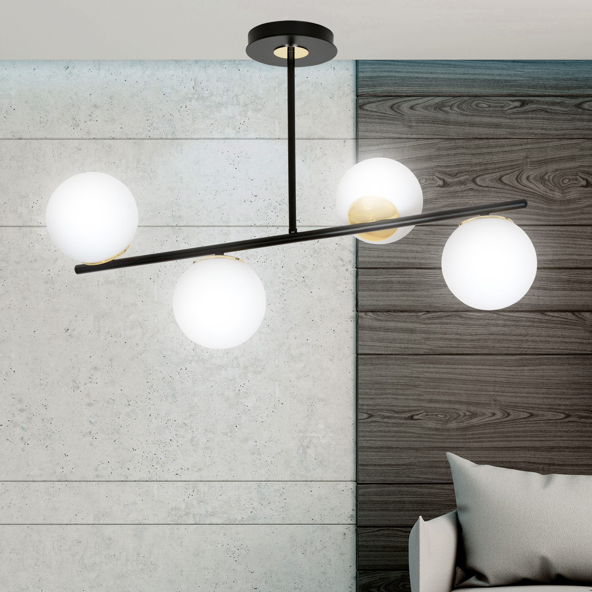 Struer hanging lamp black and gold with milky white bulbs 6x E14