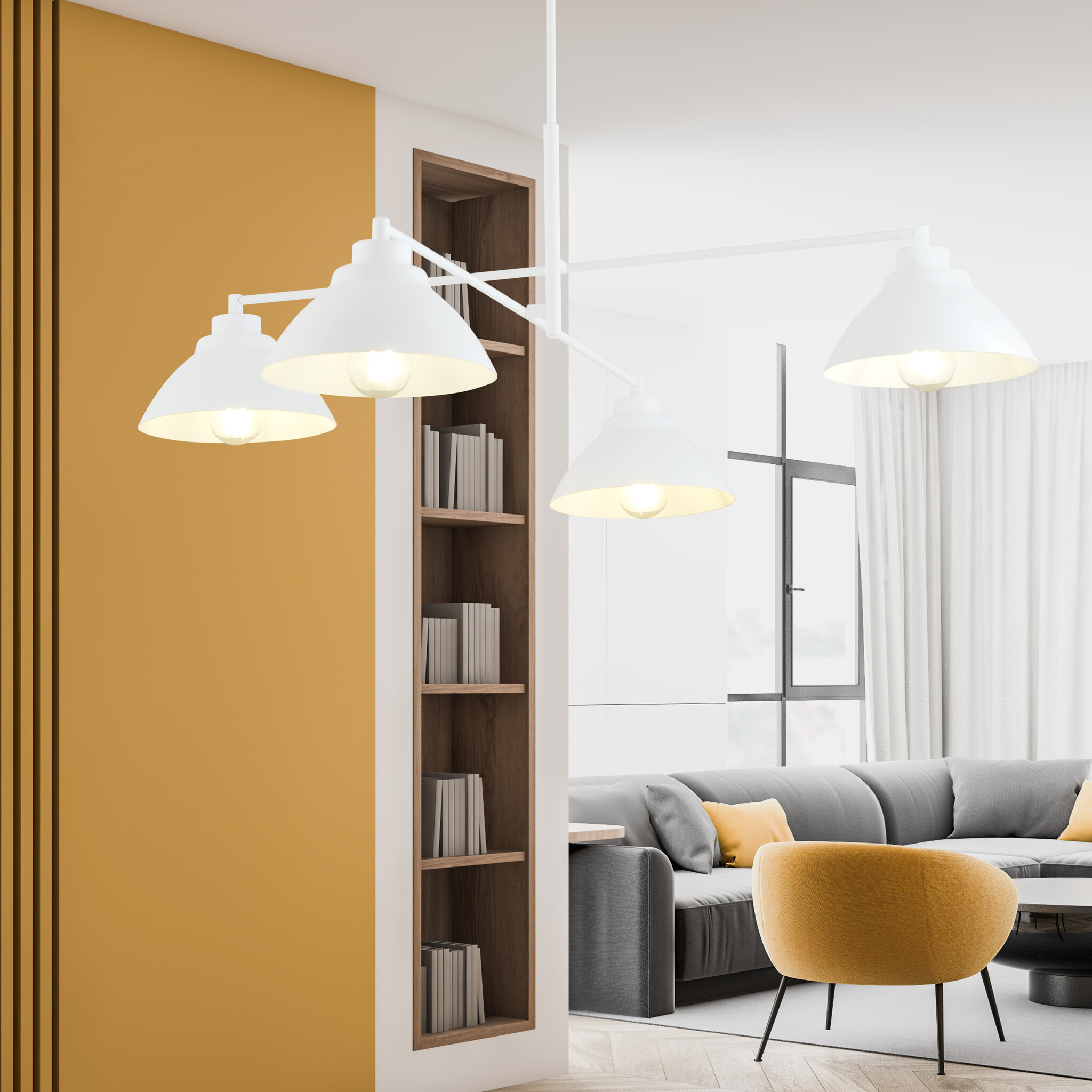 Order this stylish white pendant lamp with 4 white metal shades e27 at My Planet LED. Fast and free shipping in Benelux, France and Germany. We are also happy to help professionals (B2B) with an extensive professional range, free lighting advice, unique customized articles and all this with the strongest margins! Read more about our professional partnerships. Do you have any questions? Contact us by mail ([email protected]) or by telephone (+32) 57 466 866 for more information about this stylish white pendant lamp with 4 white metal shades e27.