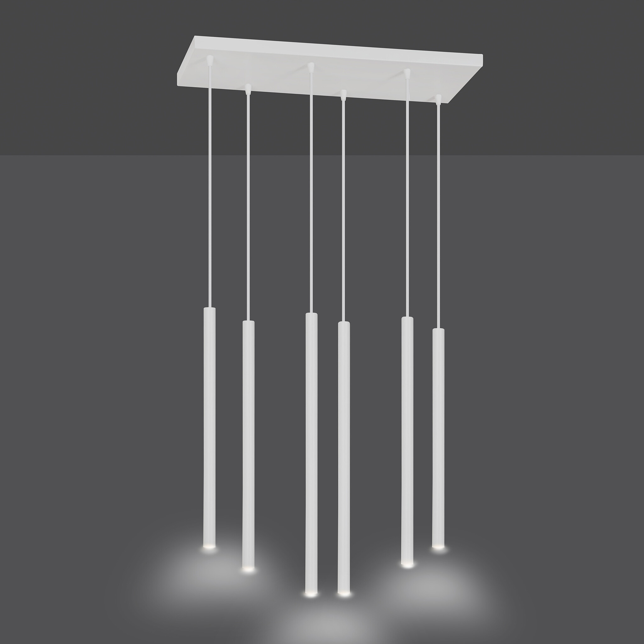 Syddjurs wide hanging lamp with long tubes white 2cm diameter 6x G9