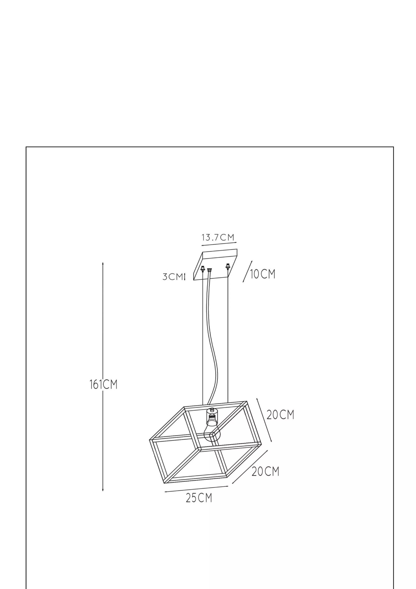 Specifications tilted cube-shaped hanging lamp E27 black: