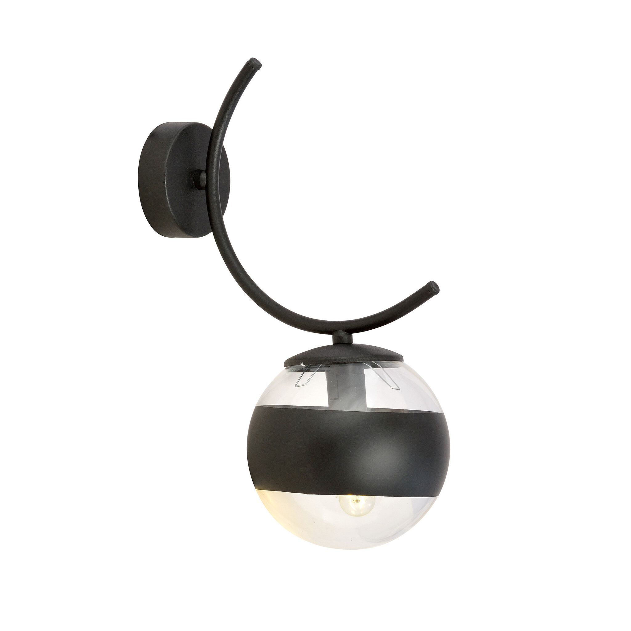 Aplique Copenhagen curvo negro con 1 bola rayada cristal E14
