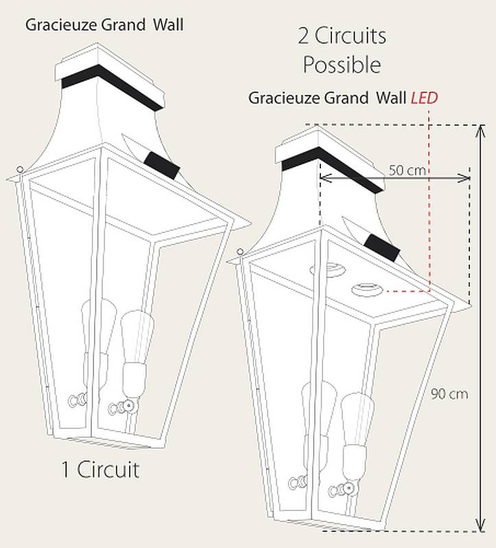 Las dimensiones de este aplique de exterior bronce rural GU10+E27 90cm H son: Alto: 90cm, Ancho 50cm.